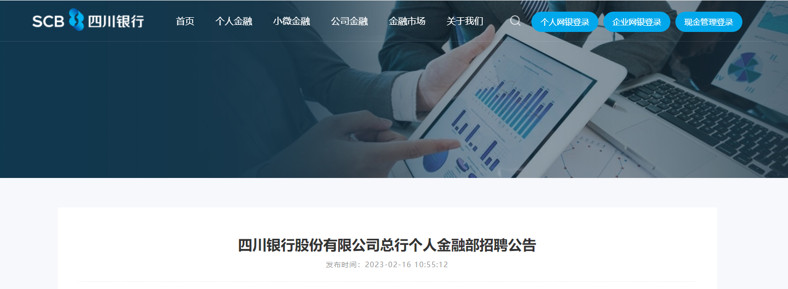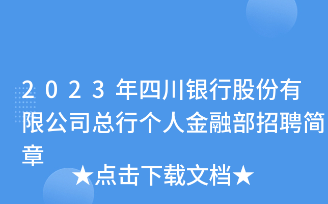 原文標題:四川銀行股份有限公司總行個人金融部招聘公告
